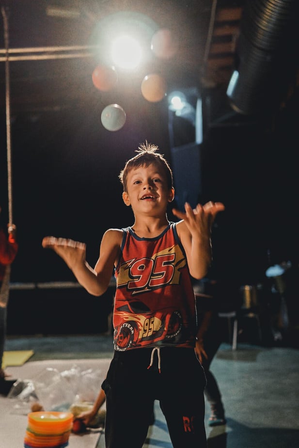 Í smiðjunni munum við búa til djögglbolta, fylgt eftir með því að hita upp líkamann og kynnast leikmuninum djögglbolta, og læra á tæknina við að djöggla.