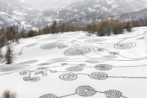 San Francisco- based artist Sonja Hinrichsen will show us several of her arts projects. Despite a rather diverse work spectrum – ranging from video installations to nature interventions – most of Sonja’s work is informed by natural environments and responds to her explorations of lands/places and their cultural and historical contexts. Sonja will introduce her project “Snow Drawings”, where she guides communities to create huge drawings on snow-covered landscapes by walking pattern systems with snowshoes. She will also show some of her video installations and participatory projects that she created in places from China to Iceland, and from mainland Europe to the United States.