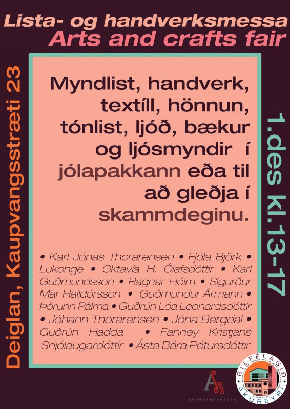 Lista- og handverksmessa Gilfélagsins verður haldin í Deiglunni laugardaginn 1. desember kl. 13-17.