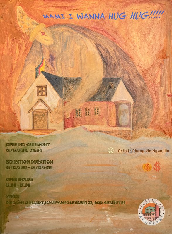 Verið velkomin á opnun Mami I wanna hug hug!!!!!, sýningar gestalistamanns Gilfélagsins í desembermánuði, Cheng Yin Ngan, í Deiglunni á föstudaginn kl. 20:00. Sýningin er einnig opin kl. 12 – 17 laugardag og sunnudag kl. 12 – 17. Léttar veitingar í boði.