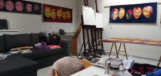 Vinnustofuna sína hefur hún heima í stofu og því stutt að fara í hugarheim sköpuninnar.