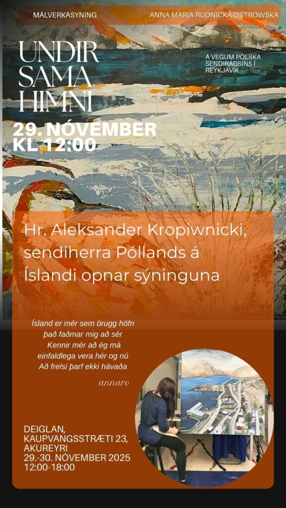 UNDIR SAMA HIMNI by Gil Felag · nóvember 24, 2025 Listsýning Önnu Rudnicka Ostrowska 29.11- 30.11. Share